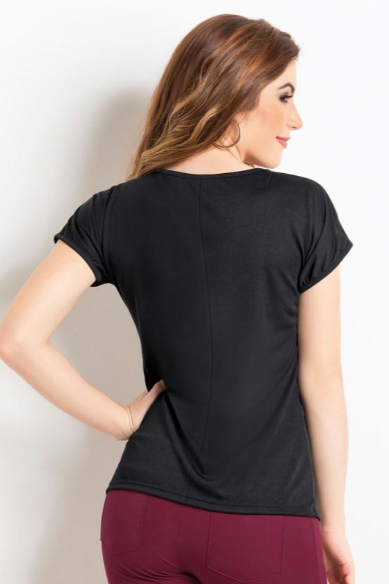 Blusa Detalhe Tule Preto da Marca 2 na cor Preto