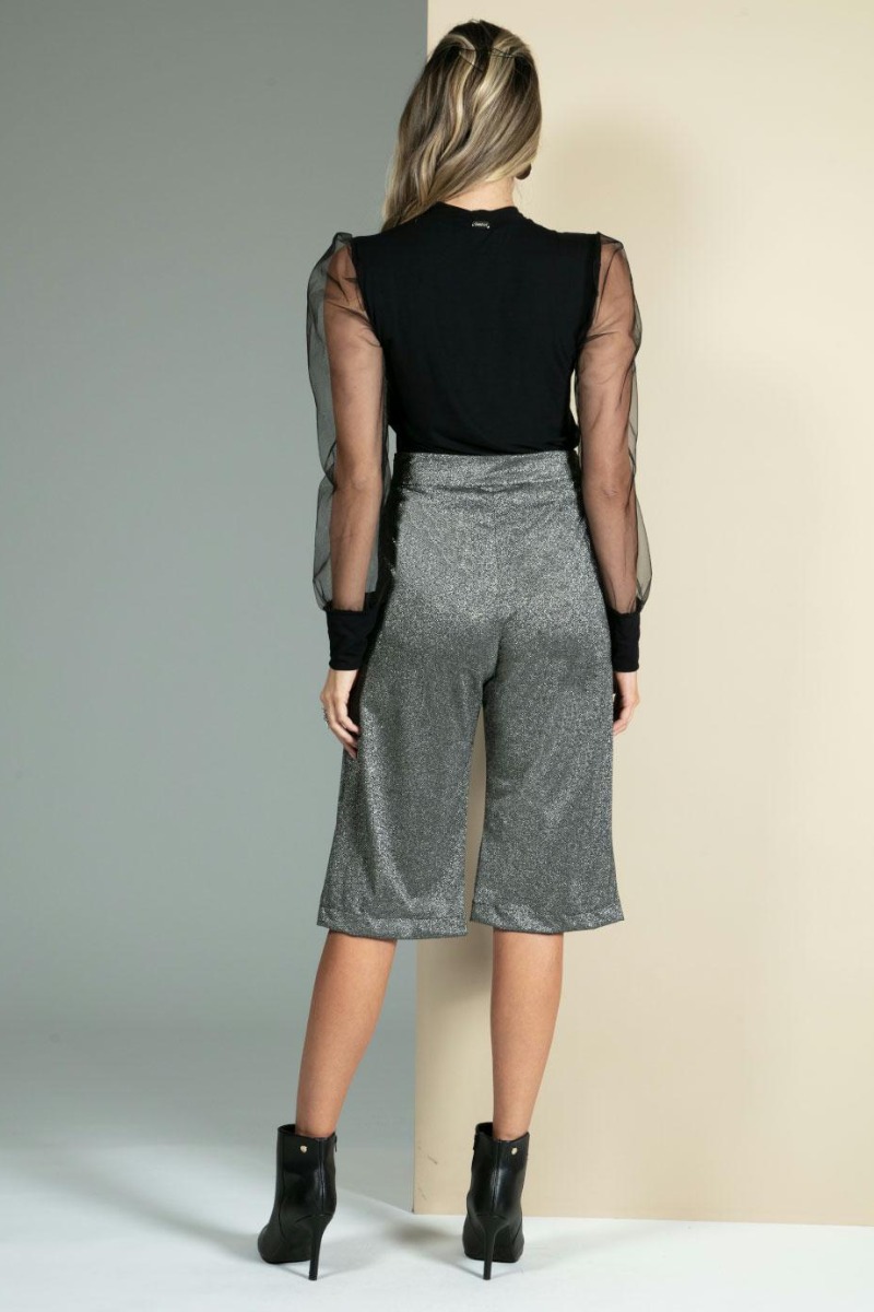 Blusa Preta Mangas Bufantes em Transparência da Marca 4 na cor Preto