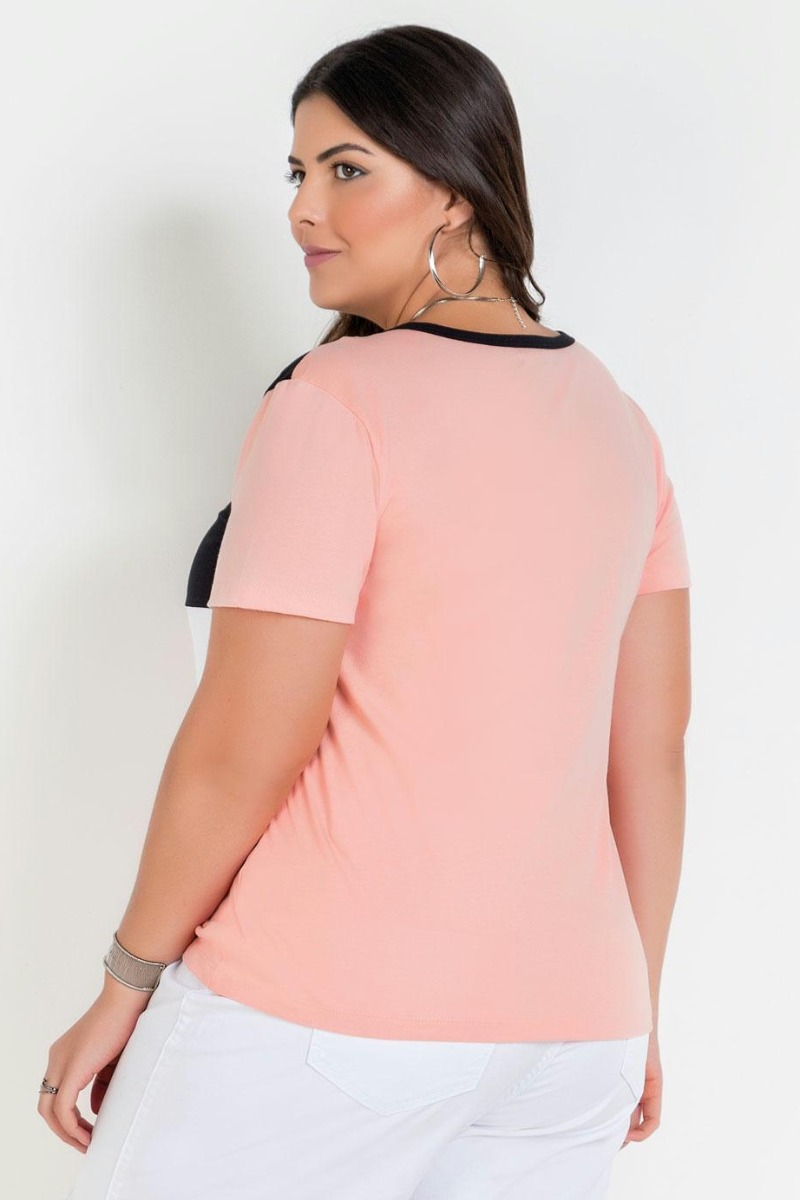 Blusa Rosa Tricolor Plus Size da Marca 3 na cor Rosa