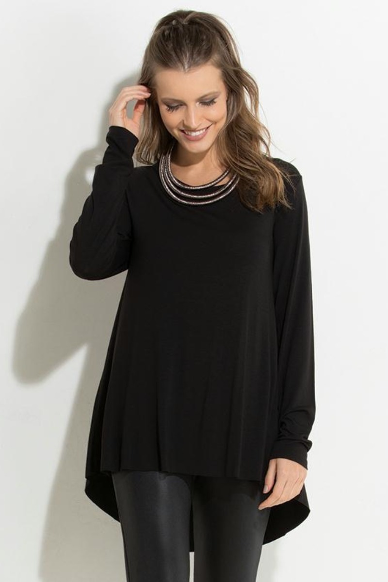 Blusa Preta Modelo Mullet com Manga Longa - Marca 1 - Preto
