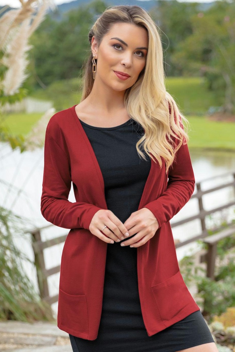 Cardigan Vermelho com Bolsos Frontais - Marca 1 - Vermelho