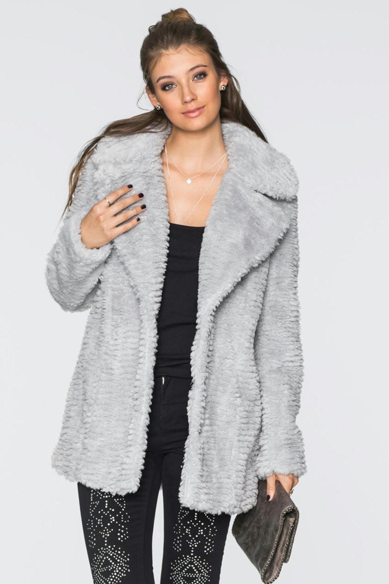 Casaco Oversized com Pelo Sintético Cinza - Marca 1 - Cinza