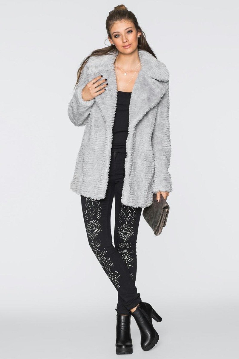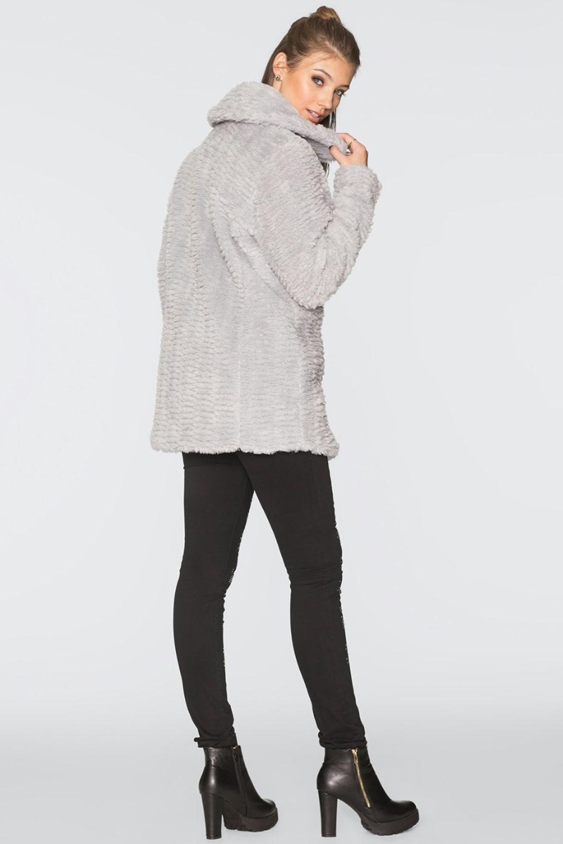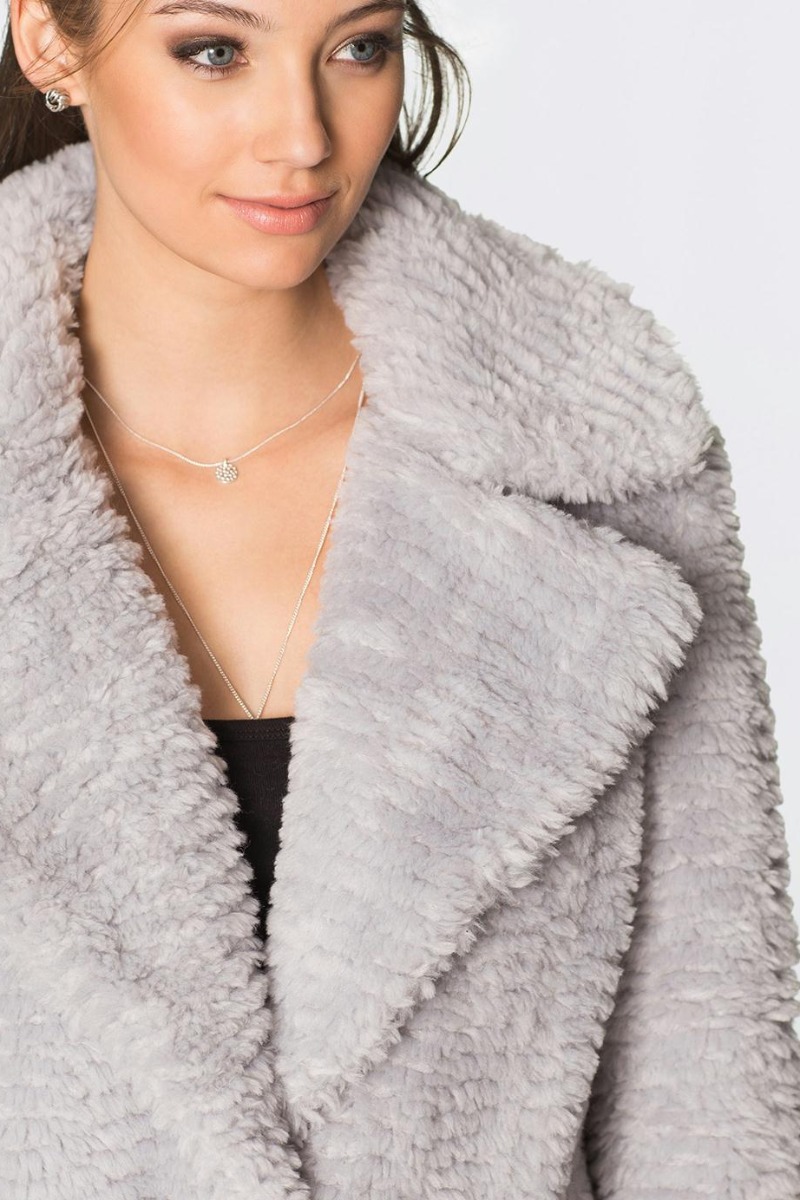 Casaco Oversized com Pelo Sintético Cinza da Marca 4 na cor Cinza