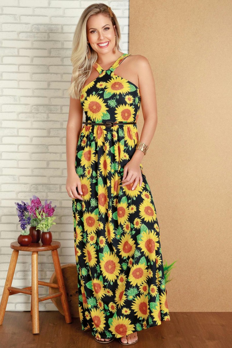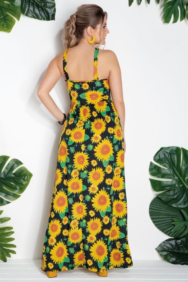 Vestido Longo Amarelo com Decote Transpassado da Marca 1 na cor Amarelo