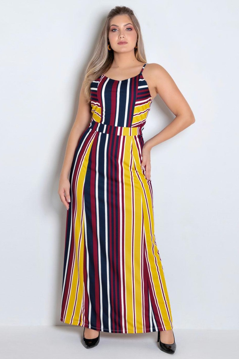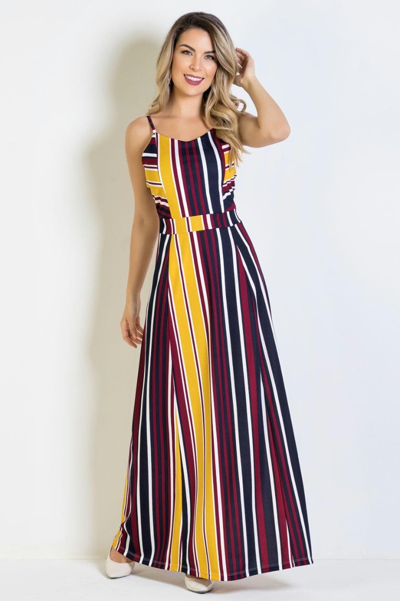 Vestido Longo Listrado com Alças da Marca 1 na cor Roxo claro