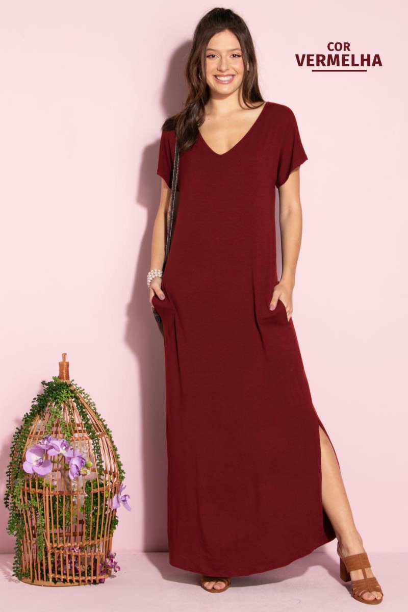 Vestido Longo Soltinho com Fenda - Marca 1 - Vermelho